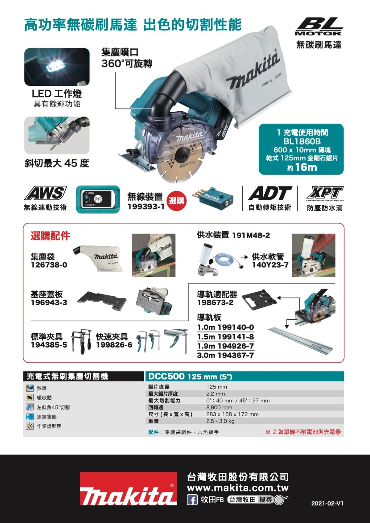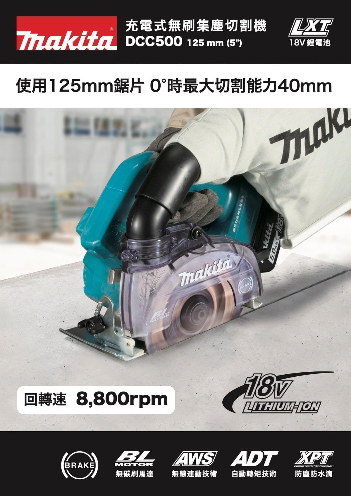 DCC500Z (單機) 充電式無刷集塵切割機 125mm